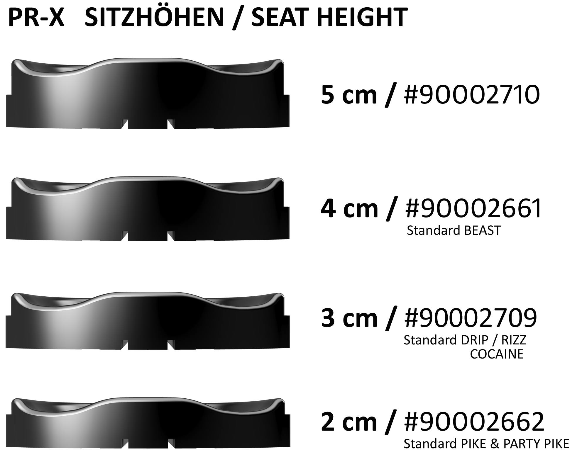 The PR-X foam seat is available in different heights. The seat mounted in your kayak can easily be swapped against another one with a different height. These seat heights are available optionally as an upgrade: